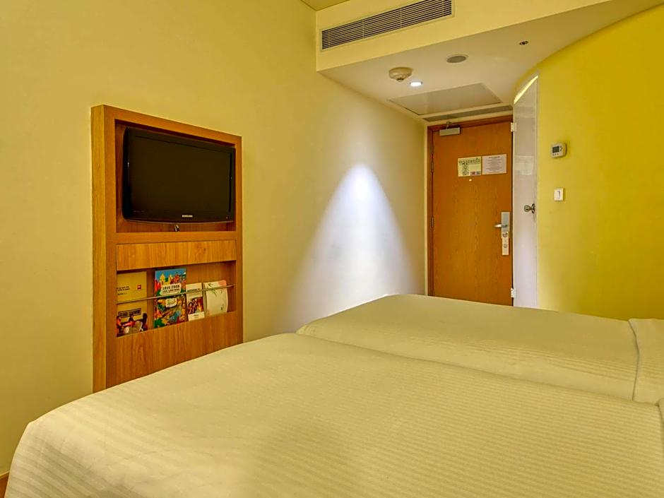 Room features 2 single beds, 43" 4K TV in-room safe and tea/coffee making facilities.